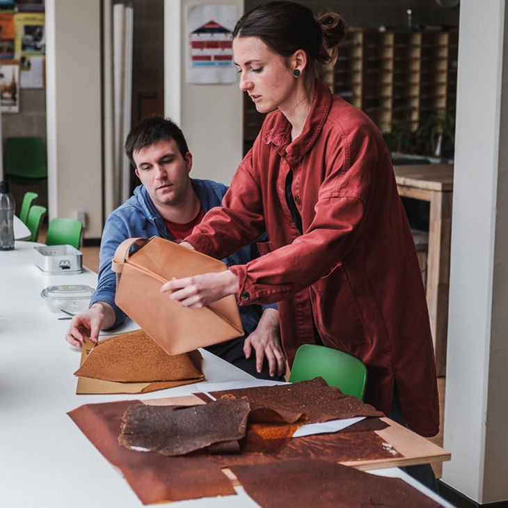 ‘« Nous voulions avant tout écrire une histoire locale », explique Evert Vanecht, chimiste et co-instigateur d’APPEAL, un projet de recherche de l’UC Louvain-Limbourg qui s’inscrit dans le sillage de Piñatex. « Les alternatives végétales au cuir animal que nous mettons au point proviennent uniquement de déchets fruitiers belges. Il s’agit à 90 % de résidus de poires et de pommes ». Si le matériau conçu par l’équipe d’APPEAL n’est pas encore prêt à être commercialisé à grande échelle, il a néanmoins déjà servi de matière première à la créatrice Anouk Cuyckx pour le design d’un sac à main. « Le défi est maintenant de le rendre plus résistant aux déchirures et plus imperméable », poursuit Evert Vanecht. « Nous expérimentons plusieurs types de vernis, à base de fibres de lin par exemple, pour parvenir à nos fins. L’objectif est de rester sur une composition et sur un processus totalement naturels. Nous n’employons aucun produit chimique ». Une différence de taille avec le cuir animal qui nécessite pour le traitement des peaux de grandes quantités d’eau et l’emploi de chrome, un métal lourd extrêmement polluant.