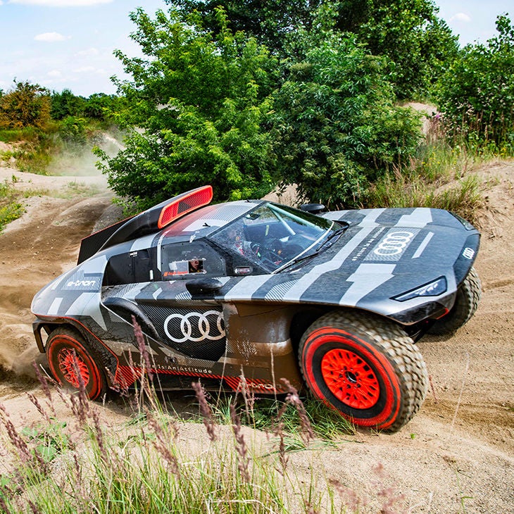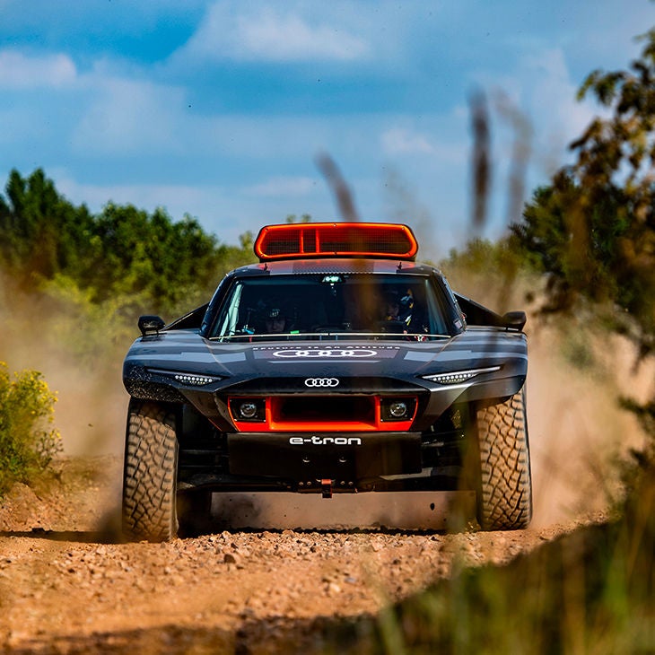 Avec des conditions extrêmes et des spéciales qui peuvent avoir une longueur jusqu’à 800 km, la technologie électrique semble peu appropriée pour une compétition dans le désert. Et c’est justement là que réside tout l’intérêt ! Car après avoir imposé le système quattro en rallye, puis sur les circuits, Audi peut aussi se targuer d’être le premier constructeur à avoir gagné les 24 Heures du Mans avec un prototype hybride (en 2012). Les défis technologiques font partie de l’ADN des quatre anneaux.