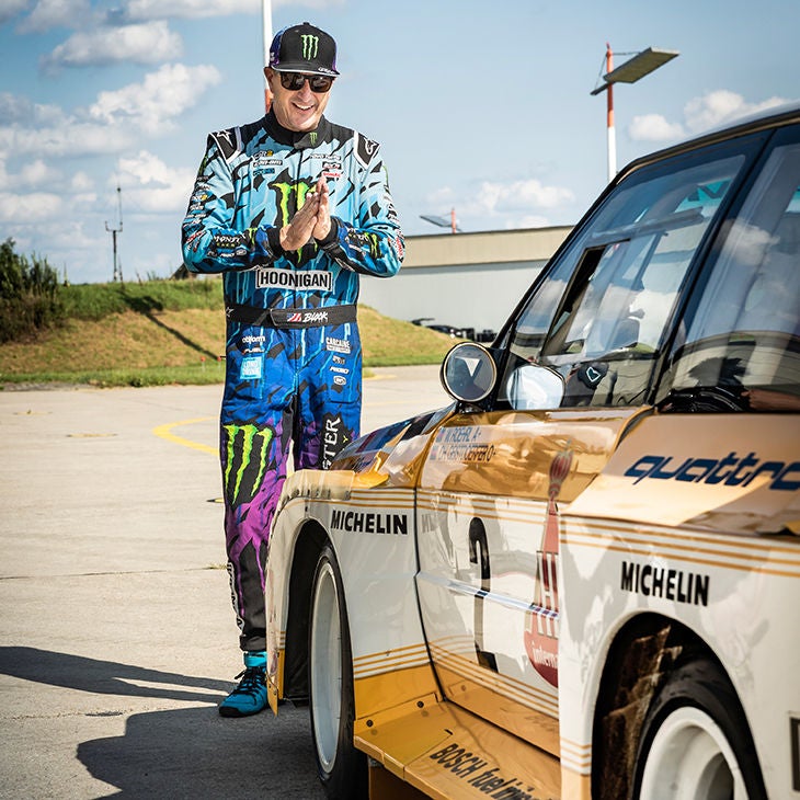 En parlant de l'Audi Sport quattro S1 E2, Audi avait justement réservé une belle surprise à son tout nouvel ambassadeur : une invitation à prendre le volant de la voiture dont il rêvait étant enfant et à découvrir ses aptitudes sur circuit. Un vrai cadeau réservé uniquement à certains privilégiés. Pour que la fête soit complète, le roi américain du drift a également pris place dans le prototype ultra-secret Audi Group S rally car. Un concept imaginé comme une évolution encore plus extrême de l'Audi Sport quattro S1 E2, mais qui n'a jamais participé à un rallye officiel.