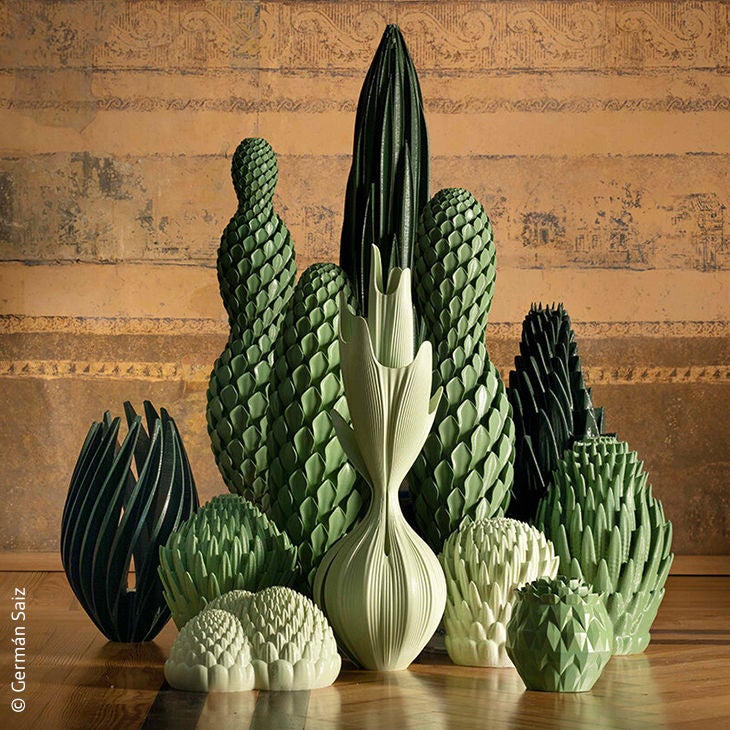 Lors de la Barcelona Design Week 2023 en octobre, External Reference a présenté, par l’intermédiaire de Carmelo Zappulla, la collection Pure Plants. Ces sculptures de plantes imprimées en 3D ont vu le jour sur la base d’une étude de design et de nouveaux matériaux. En plus d’être esthétiquement superbes, elles sont également capables d’absorber et de neutraliser le CO₂, les oxydes d’azote et les composés organiques volatiles, aussi bien à l’intérieur qu’à l’extérieur.
