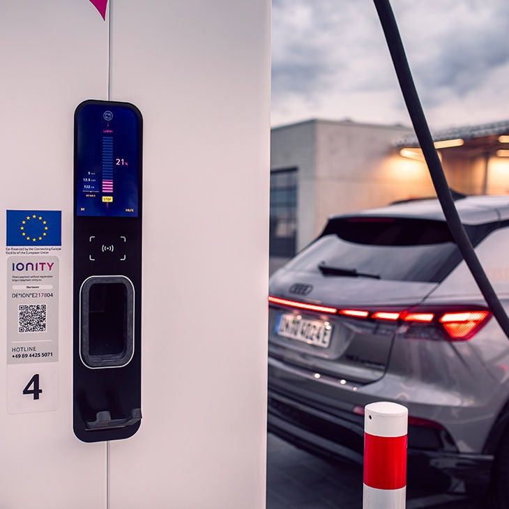 Depuis décembre 2021, Audi propose une forme de recharge premium sur le réseau IONITY : "Plug & Charge" (PnC). Ce nom fait référence à la possibilité de recharger une voiture électrique de manière simple et totalement sûre sans carte RFID (identification par radiofréquence) ni même d'application.