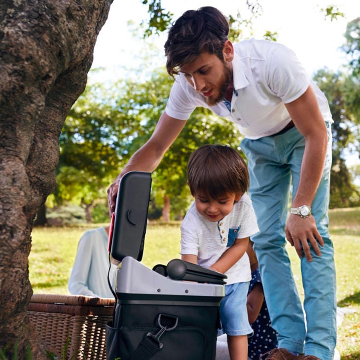 Encore un accessoire souvent oublié et pourtant très pratique : la glacière thermoélectrique est indispensable pour les longs trajets en voiture. Son volume d’au moins 20 litres permet une conservation à la bonne température. On peut y placer des bouteilles de 2 litres rangées debout et l’alimentation électrique s’effectue par une prise 12 volt branchée dans le véhicule.Pratique en route et à l’arrêt !