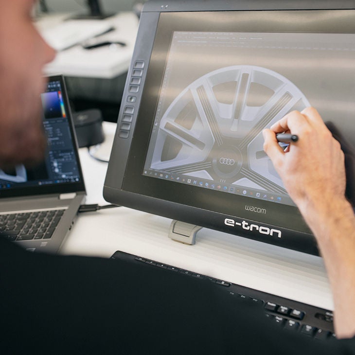 L'IA ouvre également de nouvelles possibilités dans le domaine du design. Avec FelGAN - un programme interne développé par les départements IT et Design d'Audi -, la marque utilise cette technologie pour inspirer la conception de nouvelles jantes. Le logiciel permet aux designers de puiser dans un réservoir presque illimité d'idées et de motifs nouveaux, qu'ils peuvent ensuite développer et incorporer dans leurs créations. Plus précisément, FelGAN suggère lui-même des dessins photoréalistes ou combine des dessins existants. L'outil permet également d'expérimenter en temps réel la forme, la couleur, la texture de la surface et d'autres paramètres. À l'œil nu, les créations se distinguent à peine de photographies réelles. Bien entendu, les décisions finales sont toujours prises par les spécialistes d'Audi sur la base de leurs idées créatives et de leur expérience professionnelle. Sur cette base, des jantes prototypes sont produites en plastique ou en aluminium à l'aide d'une fraiseuse de haute technologie.