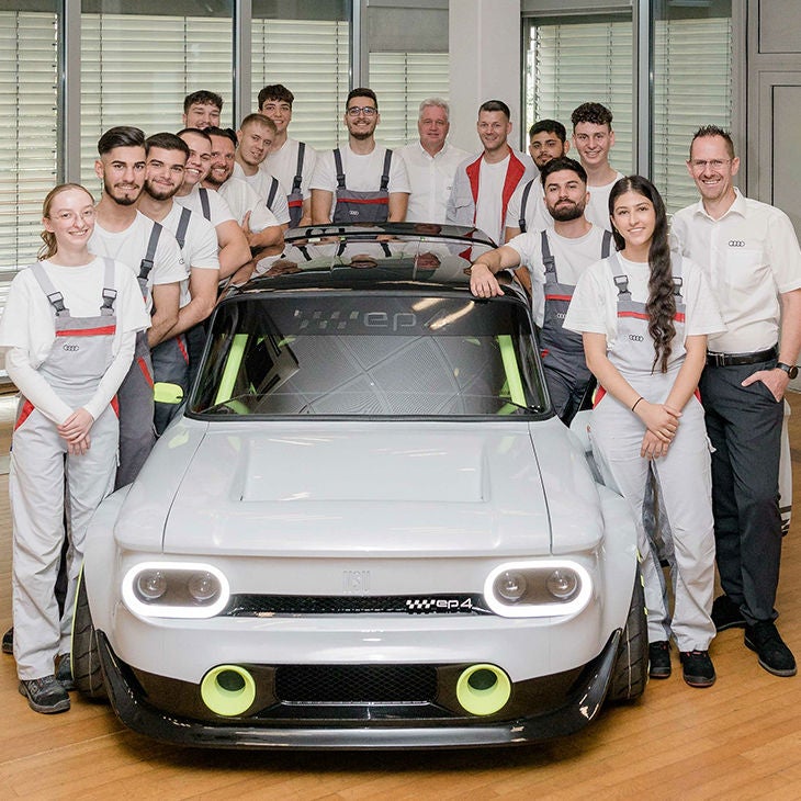 De la NSU Prinz d’origine au modèle qui vient d’être dévoilé, la transformation est tout simplement phénoménale. Les apprentis ont gardé un seul élément : la carrosserie, bien qu’elle ait été un peu élargie. Celle-ci a été placée sur la plateforme adaptée d’une Audi A1, freins et essieux compris. Pour le reste, la silhouette aux dimensions modestes a pris du muscle. Les garde-boues et les ailes ont été conçus avec l’imprimante 3D d'Audi Design. Les roues, petites et larges à la fois, ont été équipées de pneus spéciaux, pour une adhérence idéale dans les virages et les accélérations.