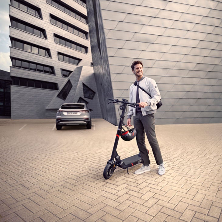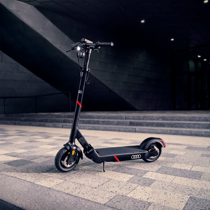 Dépliez-la, prenez un peu d'élan... Votre Audi Electric Kick Scooter powered by Egret est prête pour traverser la ville. Avec une autonomie allant jusqu'à 80 km, vous pouvez l’utiliser plusieurs jours sans la recharger. Et même si cela devait arriver, vous pouvez le faire facilement grâce au câble de recharge très pratique.
