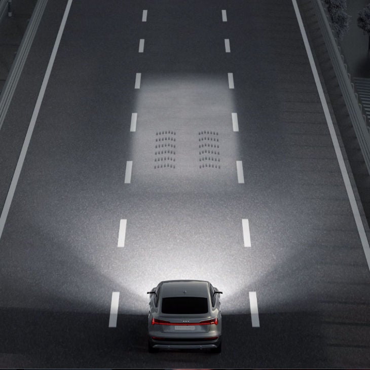 Le nouveau système d'éclairage digital offre des fonctionnalités qui rendent la conduite plus simple et plus sûre. L'un de ses ajouts majeurs concerne la fonction d'éclairage de la bande de circulation et de l'orientation du véhicule, grâce à laquelle les phares projettent un tapis de lumière qui s'étend jusqu'à 50 mètres. Ce dernier illumine la route du conducteur et s'ajuste de manière dynamique lors des changements de voie. En outre, de petites interruptions au sein du faisceau lumineux indiquent l'orientation de la voiture dans la voie où elle se trouve, permettant ainsi au conducteur de rester toujours bien au milieu.