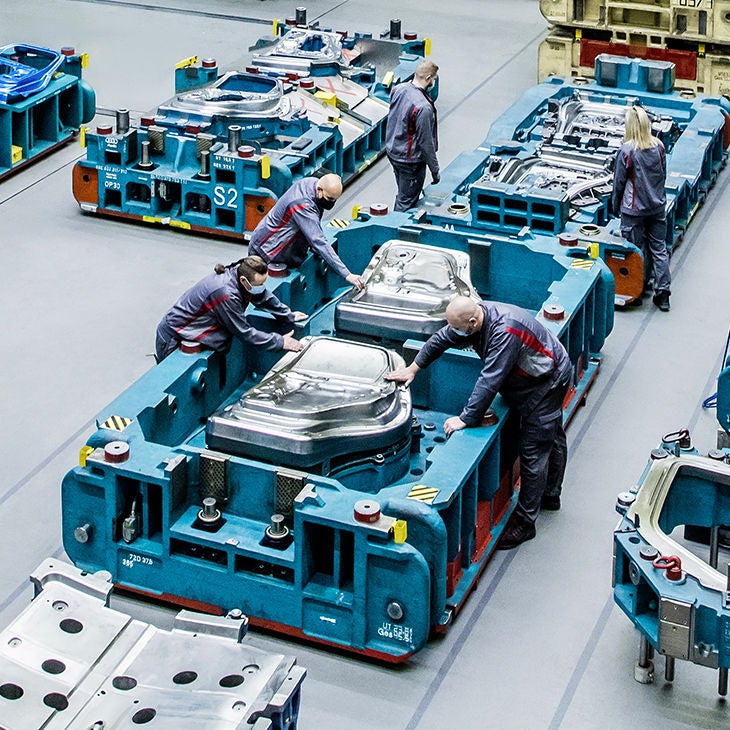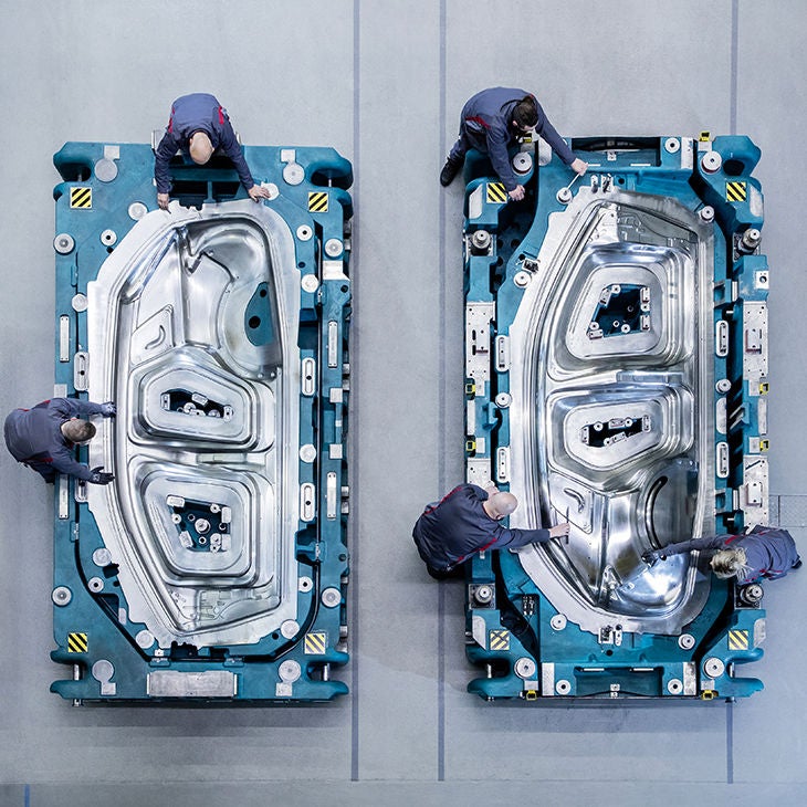Chacun des outils de pressage utilisés pour produire les panneaux latéraux est un colosse de 47 tonnes mesurant 4,50 m de long, 2,40 m de large et 1,35 m de haut. Ces outils gigantesques sont le fruit de milliers d’heures de réflexion, de confection et contiennent jusqu’à 500 pièces différentes. Il faut plusieurs mois pour fabriquer un seul jeu de ces immenses outils.