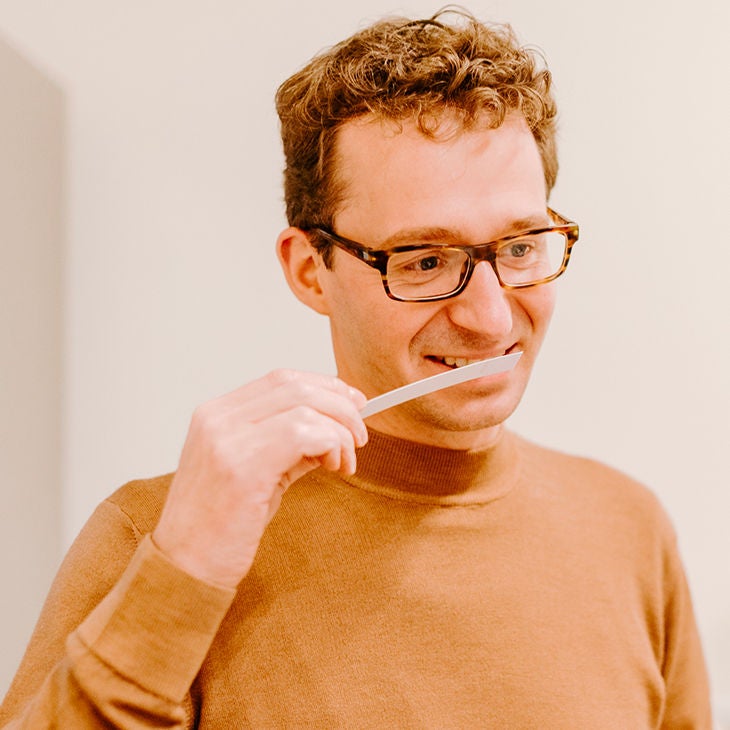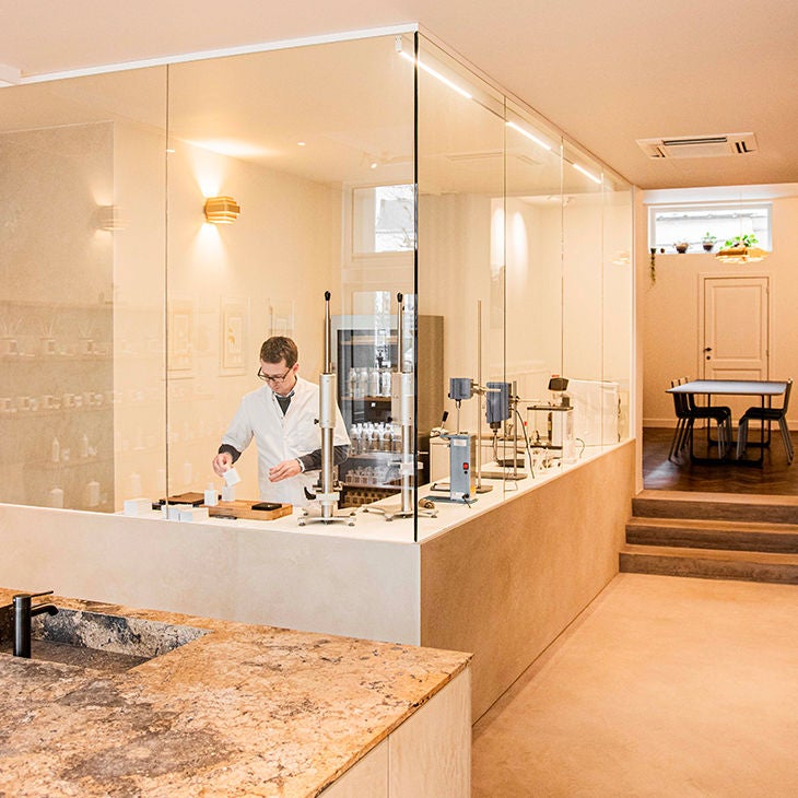 “Al van toen ik zo’n vijf of zes jaar was, ben ik geïntrigeerd door parfums,” vertelt Kristof Lefebre. “Die mooi ontworpen flesjes openen en de geur ontdekken, dat voelde als een wereldreis. Ik was toen al aan het experimenteren om ze zelf te maken met doe-het-zelf pakketjes voor kinderen. Uiteindelijk koos ik voor een job als apotheker, maar de interesse is altijd gebleven. We waren gespecialiseerd in huidverzorging en hadden ook parfums in het gamma. Maar uiteindelijk was het contact in de apotheek met mensen die het mentaal wat moeilijk hadden en hierdoor neerslachtig waren, cruciaal in mijn verhaal. Ik kon hen met medicijnen wel wat ondersteuning geven, maar geen geluksgevoel creëren. Het was echter frappant om te zien dat wanneer ze plots een parfum roken, ze toch meteen begonnen te glimlachen. Iets wat met geen enkel medicijn lukte. Dat wilde ik verder bestuderen, en daarom besloot ik op mijn 35ste om de apotheek over te laten en te gaan voor wat mij altijd al boeide.”