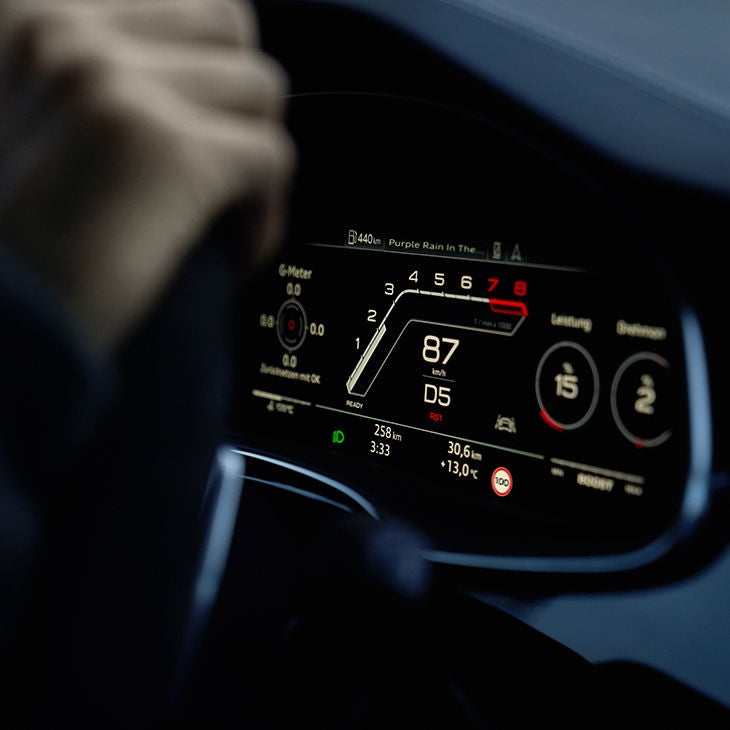Met de Audi virtual cockpit beschikt u over een volledig digitaal instrumentenpaneel. Navigatie, klok, kilometerstand, buitentemperatuur: u bepaalt zelf wat u weergeeft en wat niet. Via het MMI-touchscreen wisselt u eenvoudig tussen de modi Klassiek, Sport en Dynamisch. Zijn die opties nog niet helemaal zoals u het wenst? Dan kunt u het digitale instrumentenpaneel nog verder naar uw hand zetten. Een groot voordeel tegenover een traditioneel dashboard waarin alles een vaste plaats heeft.